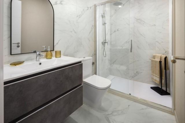 Ready to move in. Last unit available. Furniture included in the price, 1 parking space and storage room. This development is one of the last opportunities to acquire a newly built property in the center of Estepona, next to the sea, 1 minute from the beach. A lifestyle dreamed and achievable for few. This development is a wonderful Residential Development with only 23 apartments, one 1 bedroom and 22 units of 2 bedrooms located in the center of Estepona, on the Costa del Sol, Malaga. This development redefines the Mediterranean lifestyle and reflects it in its architecture, it is integrated in the Mediterranean style of this southern Spanish village, all the amenities and typical Andalusian leisure at your doorstep. A step away from the beach of La Rada, a sandy beach of 2.4 km. in the Mediterranean, very large and crowded and has a large number of services. Comfortable and functional spaces, the 2-bedroom apartments have a constructed area ranging from 88m² the smallest and up to 105m² the largest, with an individual subway parking space and has an elevator from the garage to the apartments. Apartment, City, Equipped Kitchen, Parking: Underground, Communal Pool Views: City, Sea. Features Air Conditioning, Community Pool, Completely Equipped Kitchen, Double glazing windows, Fitted Wardrobes, Indoor Pool, Optical fiber / ADSL, Roof Terrace, Solar Panels, Swimming Pool, Underground parking, Video entry system, Wooden doors.