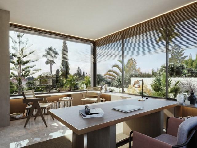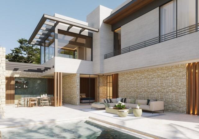 New Contemporary Villa for sale in Marbella Golden Mile. Located on a private and tranquil street, this stunning modern masterpiece exudes beauty and serenity, boasting of panoramic sea views and only minutes from the coveted Golden Mile strip. Boasting of its prestigious location, you are within a short distance to the beachfront, enjoying the fantastic outdoor lifestyle and entertainment Marbella has to offer. This 5 bedroom, 6 bathroom home sits on a plot of over 1000m2 with 652m2 of liveable space. Opening up to a spacious and bright living room area with beautiful custom-made wooden and marble designs and floor to ceiling pocket windows which allow plenty of natural light to shine through. Boasting of a generous deck complete with pool and outdoor dining area overlooking views towards the Mediterranean sea. Upstairs a sophisticated master suite opens to a spacious terrace with gorgeous views. An impressive basement level includes plenty of entertaining features such as a TV area, wine bodega, gym and cinema room. Each detail has been carefully considered, giving this villa the perfect blend of style and sophistication, ready to impress the most discerning buyer.