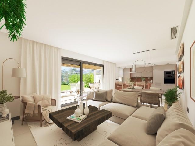 Phase 3 (only penthouses from €950,000): completed in March 2024 The peaceful streets and luxurious villas that surround this development create an exclusive atmosphere that is perfect for those who seek a select ambiance. It is conveniently located between Marbella and San Pedro de Alcántara, which makes it an ideal location for those who want to be close to both cities. The communal areas of this development are designed with an avant-garde "Boho Chic" and "Country Chic" aesthetic that combines natural materials and colors to create a perfect balance between the pool areas and the landscape. The architecture is elegant, and modern and creates a relaxed environment that is perfect for escaping the hustle and bustle of the city. The development offers a range of luxurious properties including ground-floor, first-floor flats, penthouses, and duplexes, each with its own solarium. These properties are fully equipped with top-brand finishes, providing an exquisite living experience. In addition, each property comes with an underground parking space and a storage room, ensuring that residents have everything they need for a comfortable and convenient lifestyle. In summary, this is a unique and exclusive residential community that offers a luxurious living experience in a tranquil environment. With its stunning views, avant-garde architecture and excellent location, it is the perfect place to call home. Apartment, Close to Golf, Furnished, Fitted Kitchen, Parking: Underground, Communal Pool, Garden: Community Views: Coastal, Golf, Lake, Panoramic, Sea. Features Automatic Irrigation System, Community Garden, Community Pool, Covered Terrace, Fitted Kitchen, Furnished, Modern Style, Newly Built, Pool, Prestigious Area, Private Terrace, Quiet Location, Sea Views, Storeroom, Swimming Pool, Terrace, Underground parking.