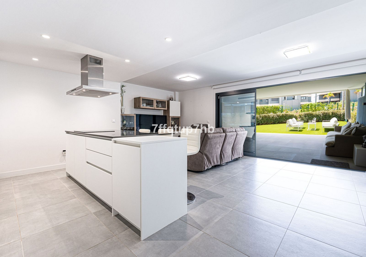 We are delighted to present this beautiful corner ground floor apartment, nestled in Phase II of the exclusive Oasis 325 development—named for the 325 days of sunshine Estepona enjoys each year. This 3-bedroom apartment features an open-plan design, seamlessly integrating a modern, fully equipped kitchen with the living area. The space opens onto a spectacular south-facing terrace and a private 80 m² garden, perfect for basking in the endless sunlight that characterizes the Costa del Sol. Two of the three bedrooms boast stylish en-suite bathrooms. The master suite offers direct access to a private terrace, fully enclosed with glass curtains, providing the perfect spot to relax in total privacy and enjoy the sunrise without leaving your room. Every detail of this apartment has been thoughtfully designed to combine functionality and style. The kitchen has been expanded with extra cabinetry and a perfectly integrated XL fridge. Additional conveniences include a separate laundry room, an independent storage room, and one underground parking space—making this home as practical as it is luxurious. All bedrooms are equipped with fully fitted built-in wardrobes and electric blinds for maximum comfort. Enhance your lifestyle with the resort-style amenities offered by this residential complex: lush gardens, outdoor swimming pools, a fully equipped gym, a luxurious spa with hammam and sauna, as well as a yoga and fitness studio—allowing you to relax or maintain an active lifestyle without leaving home. Additionally, there is a complete coworking space with a business center to meet all your professional needs. Oasis 325 enjoys a privileged location on the renowned New Golden Mile, just 10 minutes from Estepona and 15 minutes from Marbella. It is adjacent to La Resina Golf Course, 2 km from Atlas American School, and close to the popular Selwo Safari Park. Only 4 km from the beach, you can enjoy elegant beach clubs and gourmet restaurants nearby. Don’t miss the opportunity to experience everything this property has to offer. Delivered fully furnished and ready to move in!