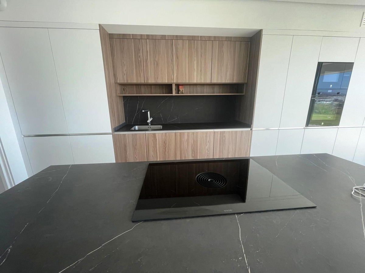 Ground floor apartment in new urbanization, 4 bedrooms, 3 bathrooms, luxurious view of Estepona and the sea, large glazed terrace with access to the lawn. Guaranteed absence of any frontal development. Two parking spaces. Large storage room with direct access from the landing where the elevator and neighboring apartments are located. Full air conditioning, washing machine and dryer. Huge built-in refrigerator and freezer. The kitchen is equipped with a stove with an integrated extractor hood. State-of-the-art plumbing. In the inner patio, there is the possibility to build a private winter garden or an additional bedroom. The complex has a huge pool and a sports complex with modern equipment. South-facing orientation. The living room, kitchen, and two bedrooms open onto the terrace. The other two bedrooms have a view of the patio. The apartment includes a laundry room with a boiler, washing machine, and dryer. Year of construction 2025.