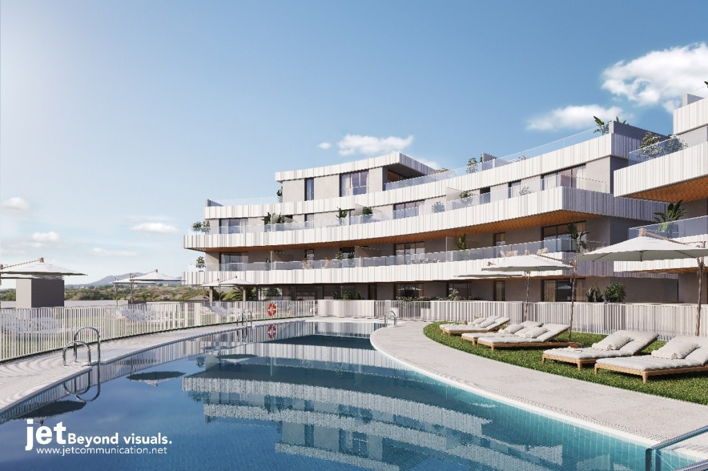 | Setting: Close To Schools Pool: Communal Climate Control: Hot A/C Views: Sea Features: Ensuite Bathroom Kitchen: Fully Fitted Garden: Communal Security: 24 Hour Security Parking: Garage Category: New Development |