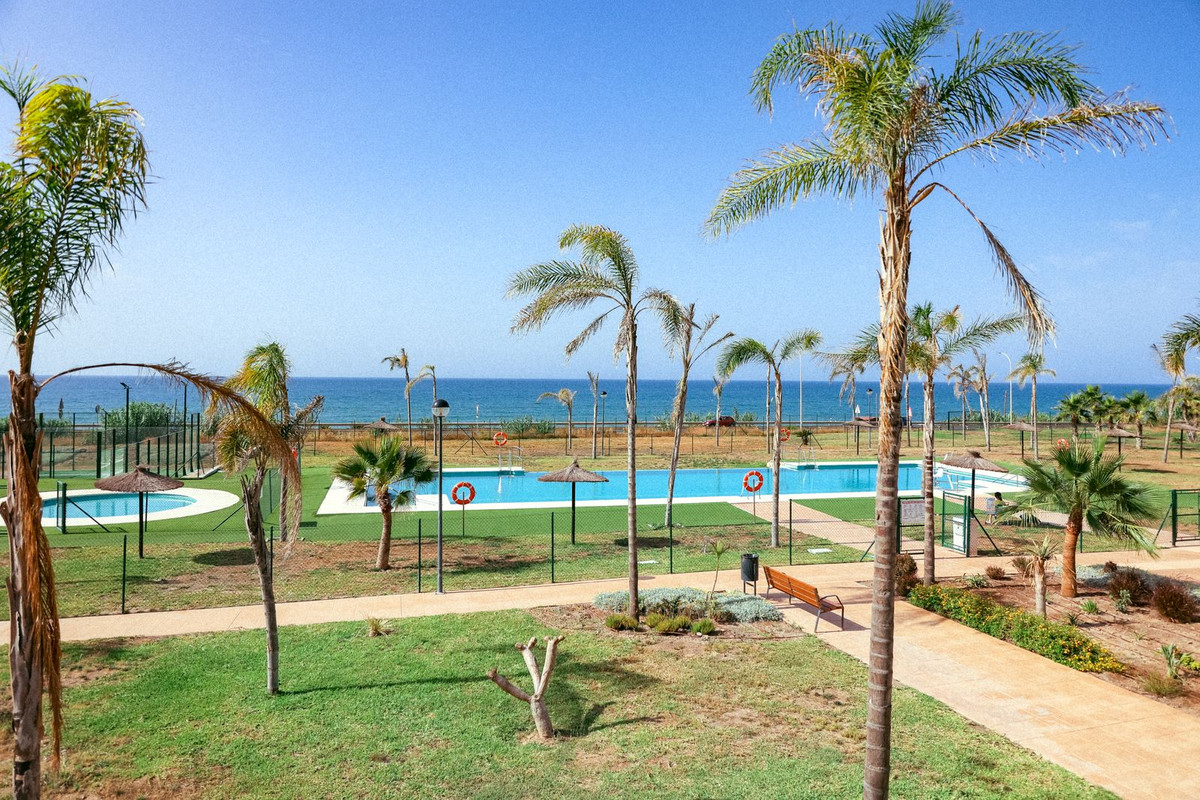 Setting: Beachfront, Close To Sea Condition: New Construction Pool: Communal Climate Control: Air Conditioning Views: Sea, Beach, Garden Features: Covered Terrace, Fitted Wardrobes, WiFi, Paddle Tennis, Access for people with reduced mobility, Fiber Optic Kitchen: Fully Fitted Garden: Communal Security: Electric Blinds, 24 Hour Security Parking: Garage Utilities: Electricity, Drinkable Water, Telephone, Gas Category: Beachfront