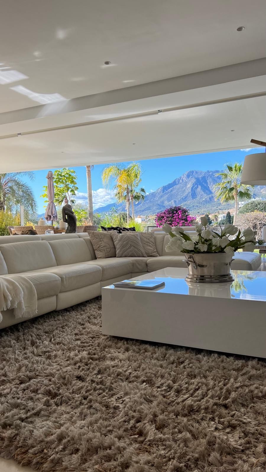 This elegant modern villa is located in the prestigious residential community of Río Real, La Finca de Marbella — just a 15-minute walk from the beach and the renowned Trocadero Arena restaurant, 5 minutes by car from Marbella’s center, and 15 minutes from Puerto Banús. The property offers three spacious bedrooms distributed over two levels. The upper floor features two bedrooms, each with en-suite bathrooms and access to a large terrace with spectacular mountain, city, and partial sea views. The third bedroom is located on the ground floor, also with its own private bathroom. The open-plan ground level includes a modern kitchenette and expansive floor-to-ceiling windows, seamlessly connecting the interior with the outdoor living areas — creating a bright and inviting atmosphere throughout. Outside, the villa boasts a private swimming pool with a heat pump and outdoor shower, surrounded by lush tropical landscaping. Additional features include underfloor heating, air conditioning, an advanced alarm and camera system, and a private closed garage for two cars. Living area: 195 m² Terraces and patios: 175 m² Plot: 803 m² Pool: 32 m²