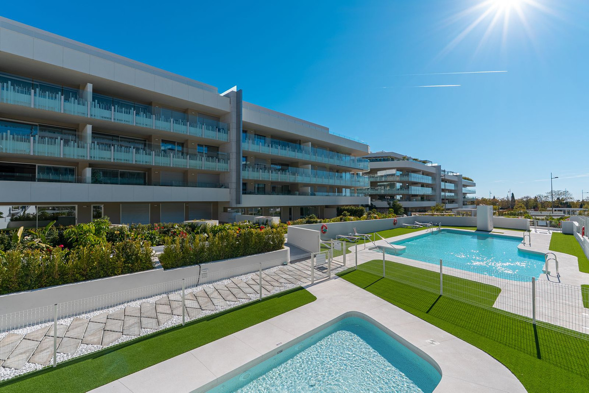 This elegant 2-bedroom, 2-bathroom ground-floor apartment is located in one of the most desirable areas of the Costa del Sol, just steps from the beach and all essential amenities. Designed for comfort, style, and convenience, this home offers a perfect blend of indoor and outdoor living thanks to its spacious private garden and generous covered terrace. With high-quality finishes throughout, the apartment features a bright open-plan living area, a fully fitted kitchen, and two well-proportioned bedrooms with fitted wardrobes. Large glass doors connect the interior with the outdoor spaces, creating a natural flow ideal for relaxation or entertaining. Set within a contemporary gated community with beautifully maintained gardens and a communal swimming pool, the property also includes private garage parking for one car and additional storage. With amenities, shops, restaurants, schools, playgrounds, and transport links all within walking distance, this home is perfectly positioned for both full-time living and holiday use. Whether as a primary residence or a premium investment opportunity, this apartment stands out for its excellent condition, prime beachside location, and rare combination of private garden and modern design.