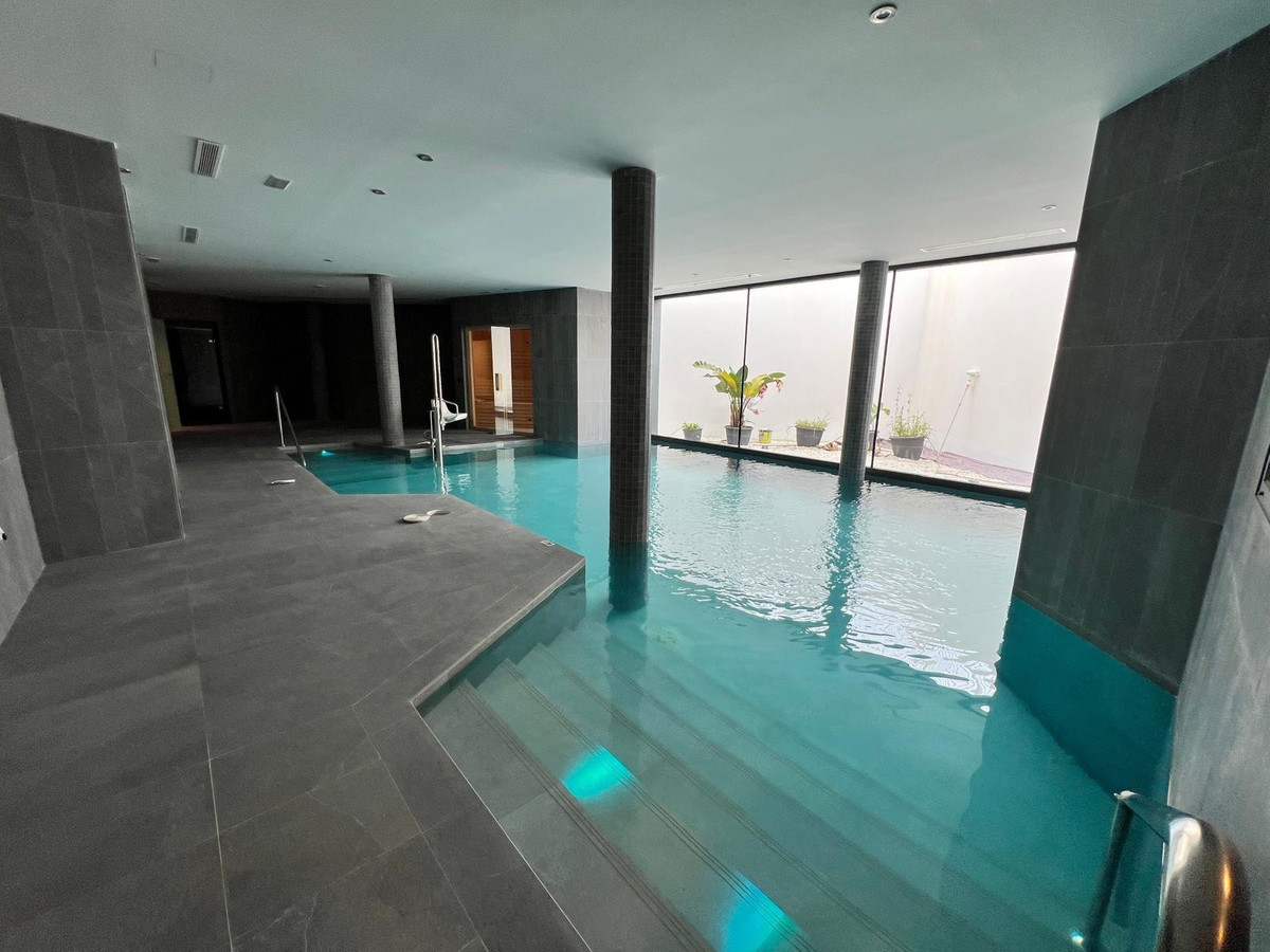 Setting: Close To Town Orientation: West Condition: Excellent, New Construction Pool: Communal, Indoor, Heated Climate Control: Air Conditioning Views: Mountain, Panoramic Features: Lift, Fitted Wardrobes, Private Terrace, WiFi, Gym, Sauna, Storage Room, Ensuite Bathroom, Jacuzzi Furniture: Fully Furnished Kitchen: Partially Fitted, Kitchen-Lounge Garden: Communal Security: Gated Complex, Electric Blinds, Alarm System Parking: Private Category: Luxury