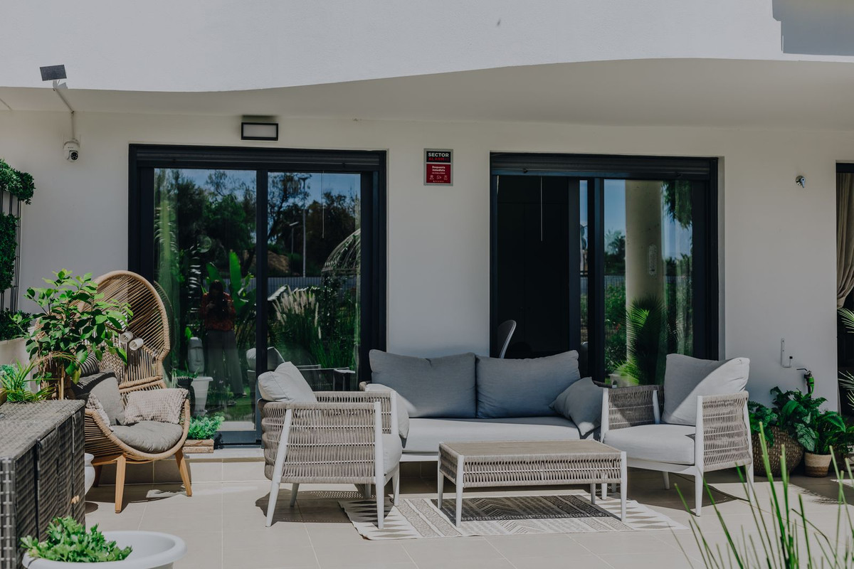 Modern ground-floor 2-bedroom apartment with amazing garden located in the exclusive Aranya development in Selwo, Estepona. The property is newly delivered, south-facing and sold fully furnished, offering bright interiors and a contemporary design. The open-plan living area connects directly to a spacious private terrace and a large garden, creating the perfect setting for outdoor dining, relaxation and entertaining. The apartment includes an underground parking space and a storage room. Aranya is a secure gated community featuring a swimming pool, landscaped gardens, a gym, wellness area and co-working space. The location is excellent: just a 20-minute walk to the beach, 4 minutes by car to Sublim Beach Club, 8 minutes to Estepona town centre and 10 minutes to Marbella, with shops, services and restaurants nearby in the Las Joyas area. An ideal property for permanent living, holiday use or as a high-potential rental investment.