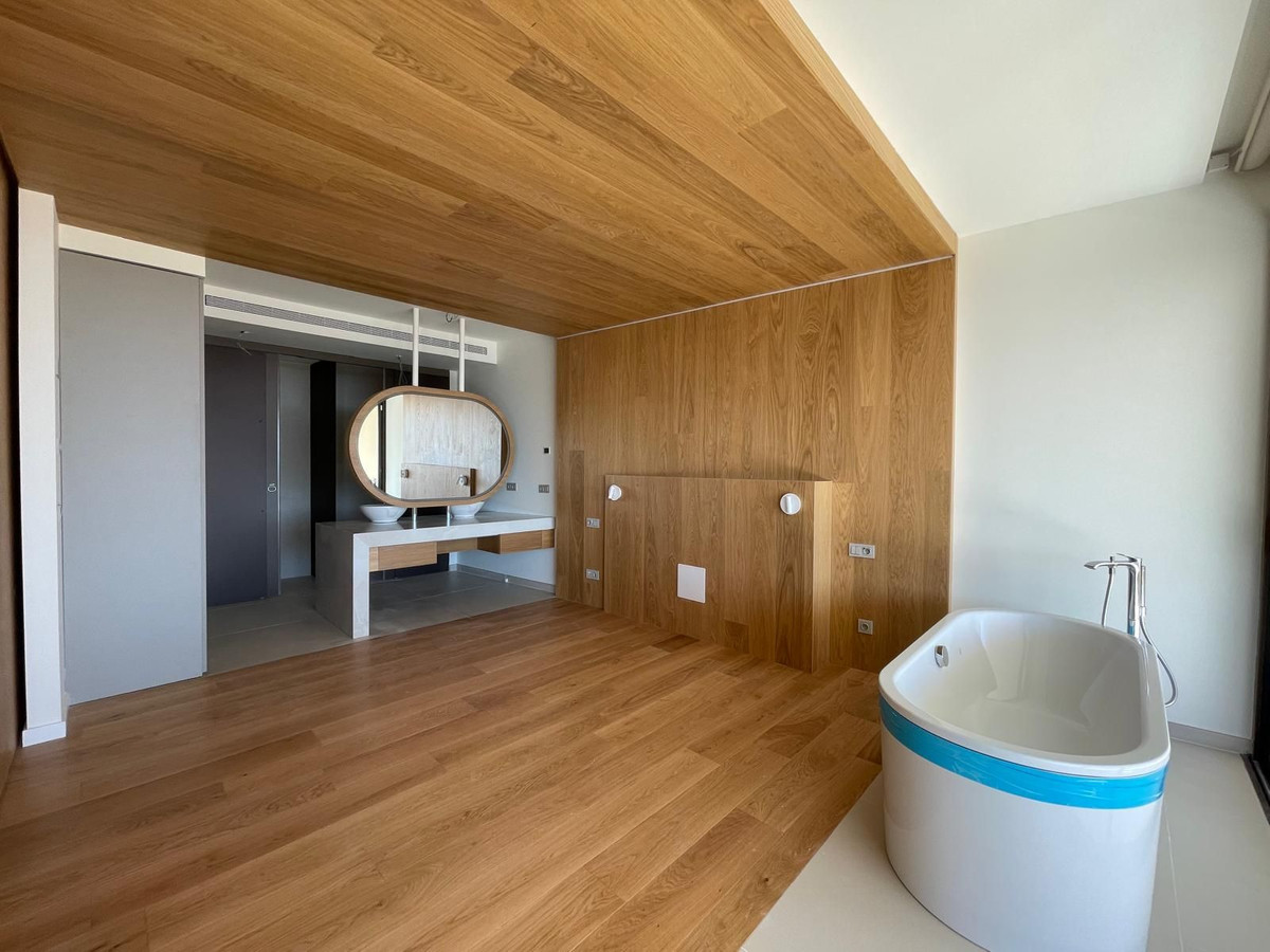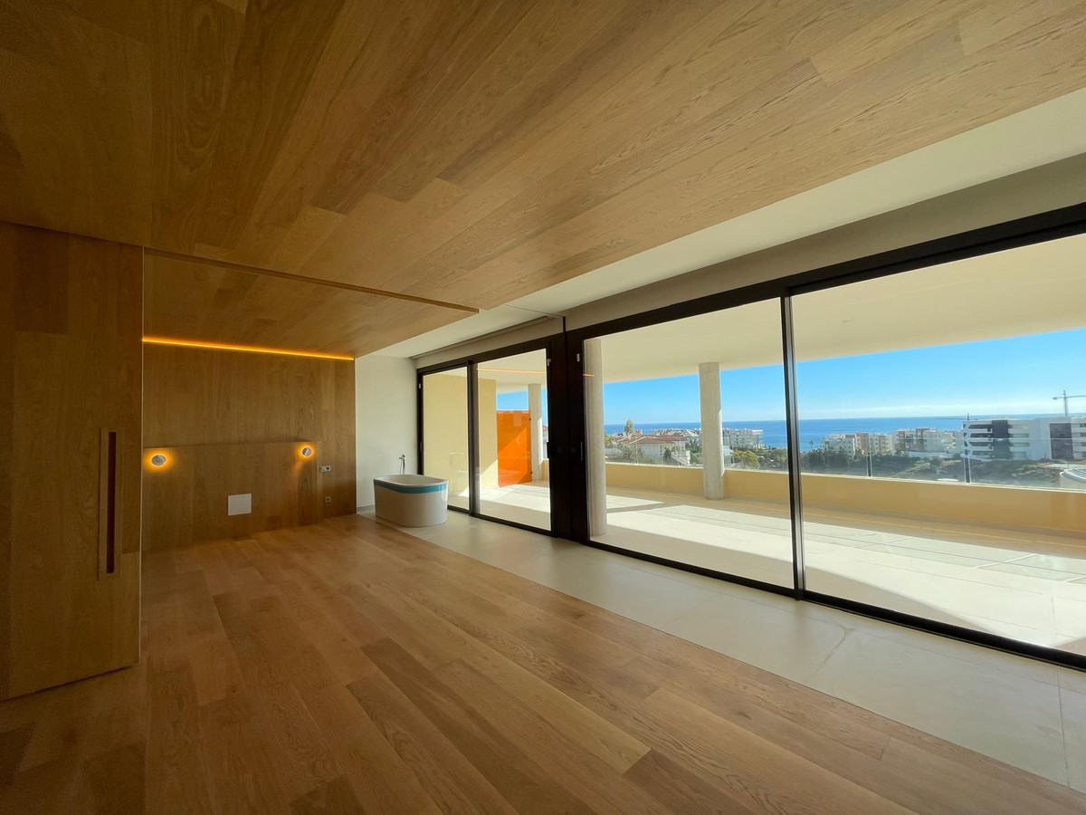 Setting: Urbanisation Orientation: South Condition: Excellent Pool: Communal Climate Control: Air Conditioning, Hot A/C, Cold A/C Views: Sea Features: Lift, Fitted Wardrobes, Near Transport, Private Terrace, Satellite TV, Storage Room, Utility Room Kitchen: Fully Fitted Garden: Communal Security: Gated Complex, 24 Hour Security Parking: Garage Utilities: Electricity, Drinkable Water Category: Luxury