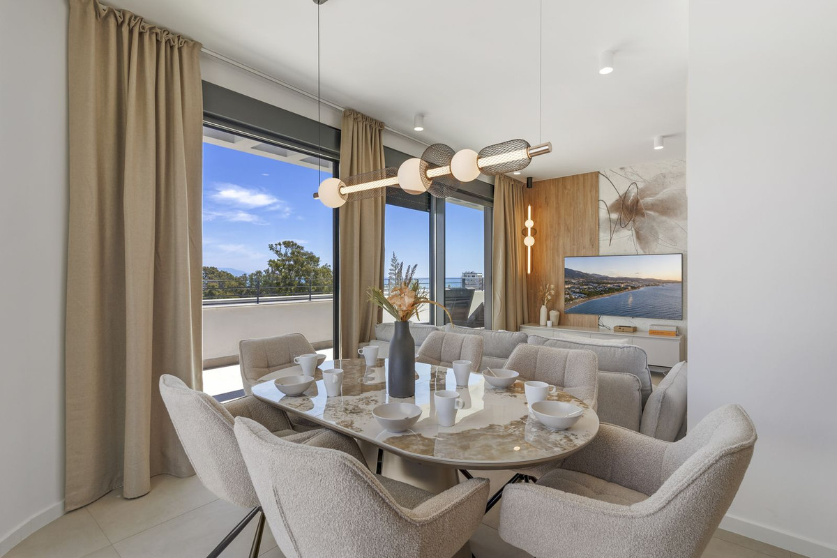 | Setting: Town, Close To Shops, Close To Sea, Close To Town, Close To Schools, Urbanisation Orientation: East, South, West Condition: Excellent, New Construction Pool: Communal Climate Control: Air Conditioning, Cold A/C, Central Heating Views: Sea, Mountain, Panoramic, Pool, Urban Features: Covered Terrace, Lift, Fitted Wardrobes, Near Transport, Private Terrace, WiFi, Gym, Storage Room, Ensuite Bathroom Kitchen: Fully Fitted Garden: Communal Security: Gated Complex Parking: Underground Category: Holiday Homes, Investment, Luxury, Resale |
