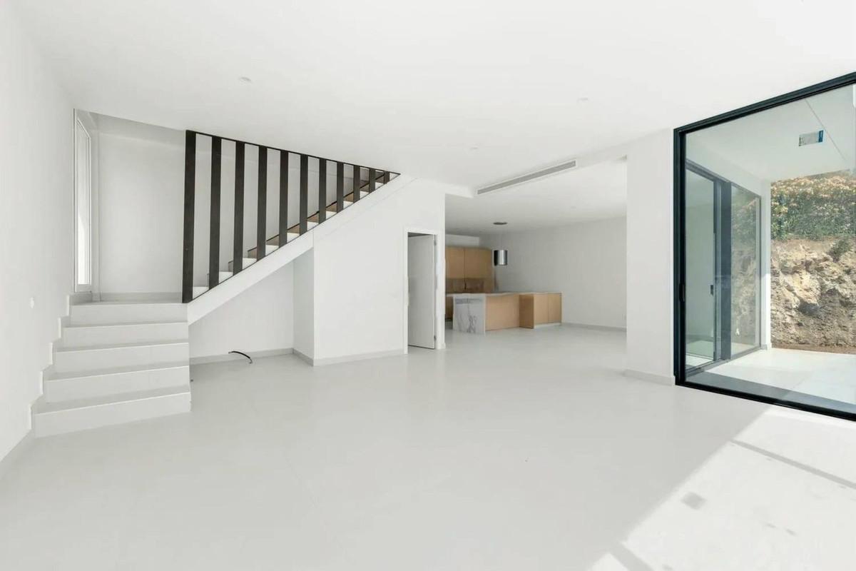 Brand new luxury and modern villa completed end of 2024 for sale in Cerros de Águila, Mijas from private owner. A stone throw away from the largest park in Málaga, parque Mijas. The property is located at the back of Cerros de Águila on a Cul de sac with 5 villas with their own separate entrances. It has fantastic panoramic views over the urbanisation, sea and mountains, there are a few bars and restaurants in the complex. Only a 10 minute drive to the beach, close to golf and shopping. The villa has 3 floors with high ceilings throughout, on the basement level there is a versatile area that you can use as you wish along with parking your cars, you can easily fit 2 bedrooms and a bathroom here, there is large windows for natural light you have outside stair access up to the house. On the first floor via stairs, you have a nice large open living / dining room and a fully fitted kitchen with top-quality appliances and with so much natural light coming from the huge sliding doors which accesses the terrace, pool area and garden. There is a downstairs toilet on this level, high ceilings and hot and cold air conditioning. Up to the second floor, there are 3 double bedrooms with two en suite bathrooms with huge showers, there is pre fittings for a 3rd in the 3rd bedroom, there is hot and cold air conditioning and fitted wardrobes and again large windows with lots of natural light and amazing views. You are only a 20 minute drive to Málaga airport and 25 to Marbella. For more information, contact us for a viewing. A must see!