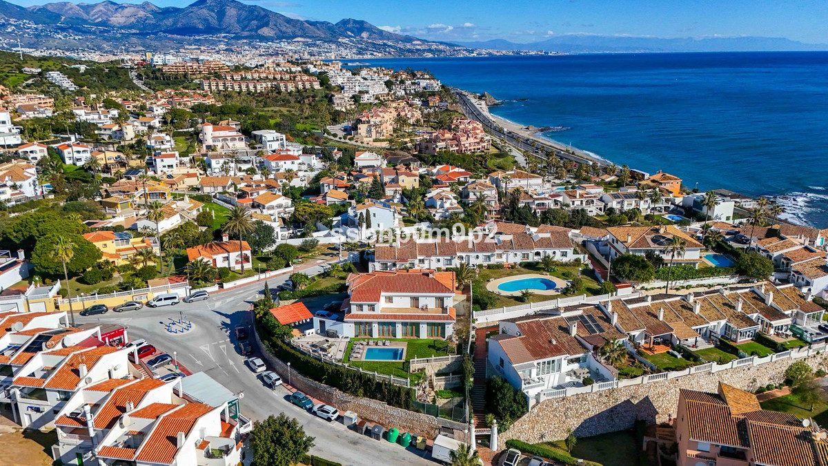 Detached villa located in El Faro de Mijas, offering open views of the Mediterranean Sea and the lighthouse, set within an elevated and peaceful residential area. The property enjoys a quiet environment, free from road noise, with good connectivity and pedestrian access to the beach, a feature rarely found in properties of this kind. The villa is arranged over two levels and stands out for its timeless architecture, generous spaces and a carefully considered connection between interior and exterior. Large windows provide abundant natural light and sea views from several rooms. The main suite features a high-end bathroom with dual facing washbasins, two independent WC areas and a spacious walk-in shower. On the upper floor, there are four additional bedrooms, all bright and spacious, each with its own en-suite bathroom. Externally, the property offers a private sea-facing swimming pool, terraces, a barbecue area, an outdoor guest toilet and an interior guest WC, all designed for comfortable year-round use. The villa is offered ready to move into, including furniture and décor, making it ideal as a main residence or a second home on the Costa del Sol.