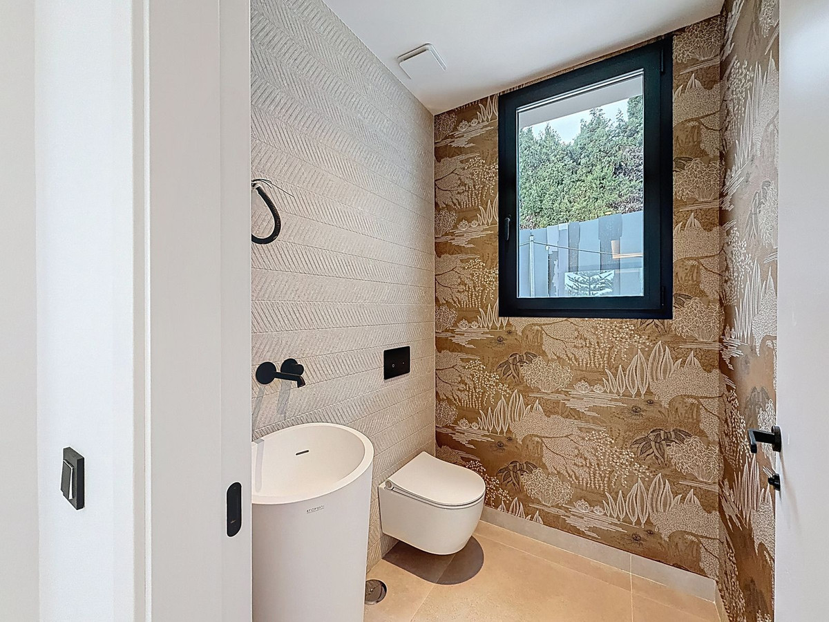 TURNKEY DESIGNER VILLA IN NAGÜELES · MARBELLA GOLDEN MILE Private Lift · 5 En-Suite Bedrooms · Interior Design Included · Infinity Pool · Rooftop Jacuzzi Located in Nagüeles, one of the most established and prestigious residential areas of Marbella’s Golden Mile, this contemporary luxury villa represents the perfect balance between modern architecture, comfort and prime location. Part of an exclusive boutique development of only two villas, the property is fully completed and ready for immediate occupancy. A true turnkey residence combining high-end construction, bespoke interior design and lifestyle-focused living spaces. Architecture & Living Concept Set on a 1,099 m² plot, the villa offers 464.44 m² of built area plus more than 250 m² of terraces, distributed across multiple levels connected by a private internal lift running from the underground garage to the rooftop solarium. The main living area is defined by an impressive double-height lounge flooded with natural light through floor-to-ceiling windows, seamlessly connecting indoor and outdoor spaces. Large open terraces extend the living experience, overlooking the infinity pool, private gardens and the iconic La Concha mountain. The fully equipped designer kitchen blends functionality with contemporary aesthetics, perfectly integrated into the social area. Private Quarters The property features: 5 Bedrooms 5 En-Suite Bathrooms 2 Guest Toilets Each bedroom is designed as a private suite, offering generous proportions, refined finishes and maximum privacy — ideal for both family living and hosting guests. Outdoor Lifestyle The exterior areas are designed to maximise Mediterranean living: Infinity swimming pool Landscaped private gardens Expansive covered & open terraces Rooftop solarium with Jacuzzi Elevated chill-out lounge Open views towards La Concha Lower Level – Lifestyle & Entertainment The basement level, connected to the garage, provides a large multifunctional space adaptable to the owner’s lifestyle, ideal for: Private gym Home cinema Games room Wellness area Entertainment lounge Features & Specifications Fully furnished with interior design project Private lift connecting all floors Underfloor heating Air conditioning Central heating Fitted wardrobes Climate-controlled wine cellar with tasting area Sauna Laundry & storage rooms Underground garage High-quality materials and advanced technical installations ensure year-round comfort and energy efficiency. Location Nagüeles offers residential privacy with immediate access to: Marbella town centre Golden Mile beaches Fine dining & beach clubs International schools Premium amenities A secure long-term value location within Marbella’s prime market.