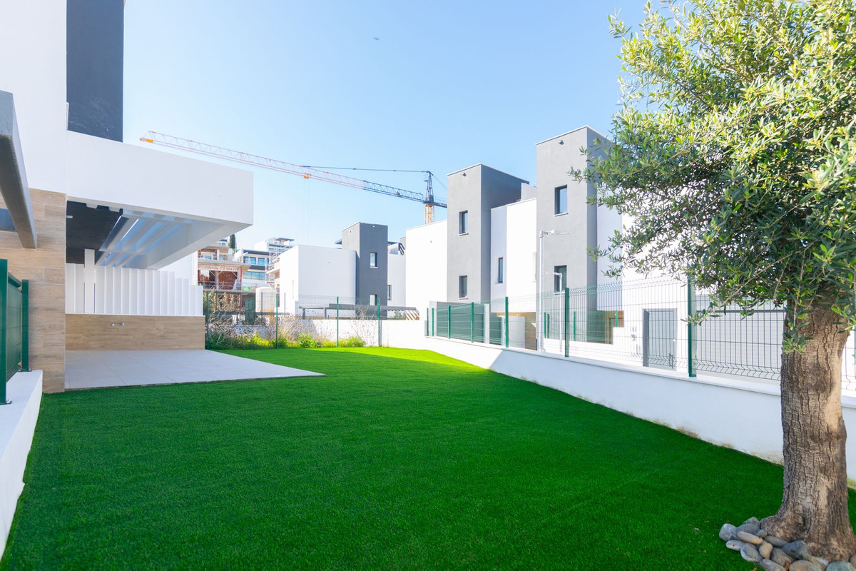 Contemporary Corner Semi-Detached Home in Atalaya with Greater Privacy, Private Garden and Flexible Basement Space Set within a modern residential community in Atalaya, this south-facing corner semi-detached home combines contemporary architecture, generous natural light and a practical layout designed for comfortable everyday living. Its corner position gives it a clear advantage over a typical internal unit, offering greater privacy, a more open overall feel and a larger private garden to enjoy throughout the year. The property offers 180 m² of built space, a 32 m² terrace and a 111 m² private plot. The main floor is centred around an open-plan living and dining area with large windows and direct access to the outdoor spaces, creating an easy connection between the interior, the covered terrace and the garden. The kitchen, with its central island and clean modern lines, reinforces the home’s bright, functional and social character. Upstairs, the bedroom accommodation is well suited to family life or extended stays, while the lower level adds valuable flexibility. Currently arranged as a multi-purpose leisure area, the basement can easily serve as a games room, gym, cinema room, office, guest area or additional family space depending on the buyer’s needs. With private parking for two vehicles, a low-maintenance garden and access to the communal pool, this is a strong option for buyers looking for a modern home with more privacy than a standard semi-detached unit, within easy reach of golf, schools and the main routes connecting Marbella, Estepona and the wider coast.