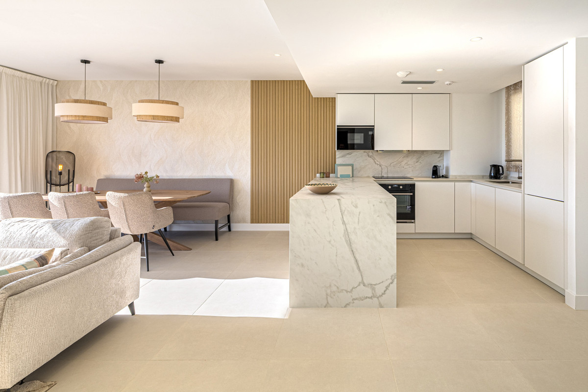 Setting: Close To Sea, Close To Town, Close To Schools Orientation: South West Condition: New Construction Pool: Communal Climate Control: Central Heating Views: Sea, Mountain, Country, Panoramic, Pool, Street Features: Lift, Fitted Wardrobes, Private Terrace, Storage Room, Ensuite Bathroom, Jacuzzi, Double Glazing Furniture: Fully Furnished Garden: Communal Security: Gated Complex Parking: Private Category: Luxury